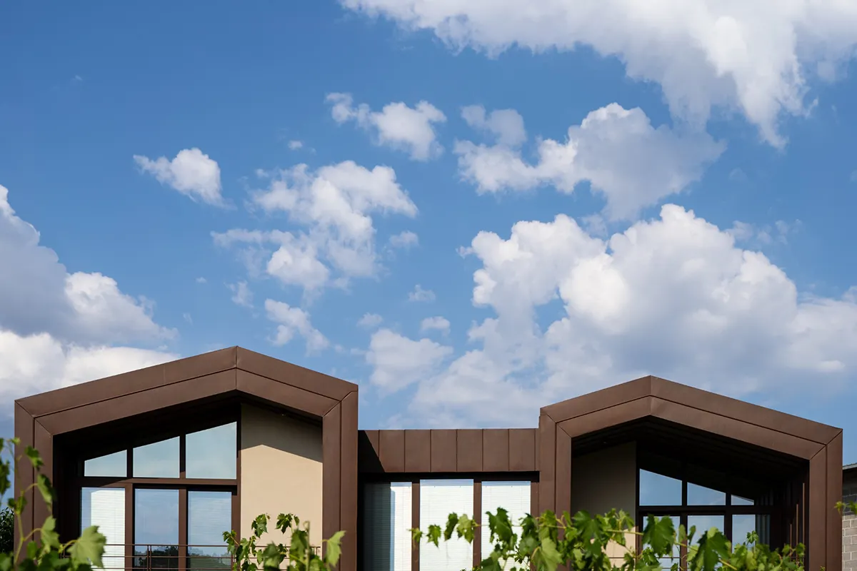 In questo equilibrio tra memoria e innovazione, il sistema di rivestimento assume un ruolo determinante. La scelta della tecnica The Skin Aggraffato in vestis® Cortex non è un fatto decorativo, ma una decisione tecnica coerente con il contesto collinare, caratterizzato da escursioni termiche, ventilazione costante e agenti atmosferici che richiedono durabilità e stabilità nel tempo. Vestis® Cortex offre una superficie evoluta capace di garantire resistenza alla corrosione e stabilità cromatica, integrandosi efficacemente con la sottostruttura lignea prevista dal progetto e assicurando un involucro leggero ma performante.